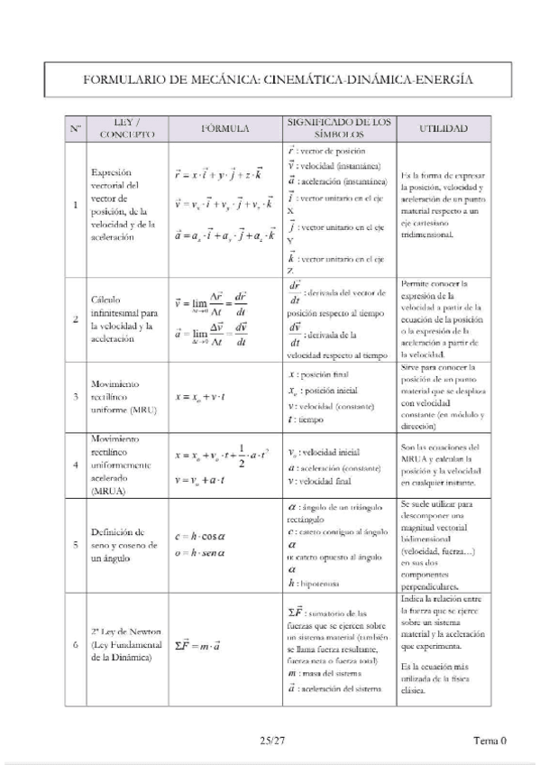 Tema 1: Dinámica Completo. El PDF contiene teoría y fórmulas y ejercicios de selectividad.