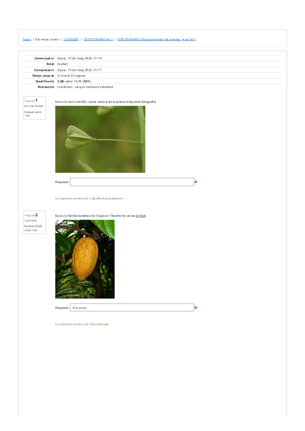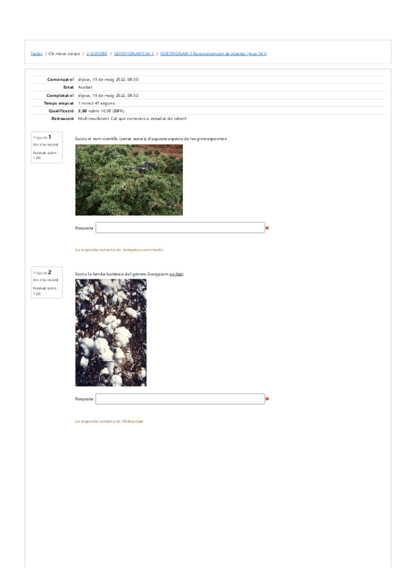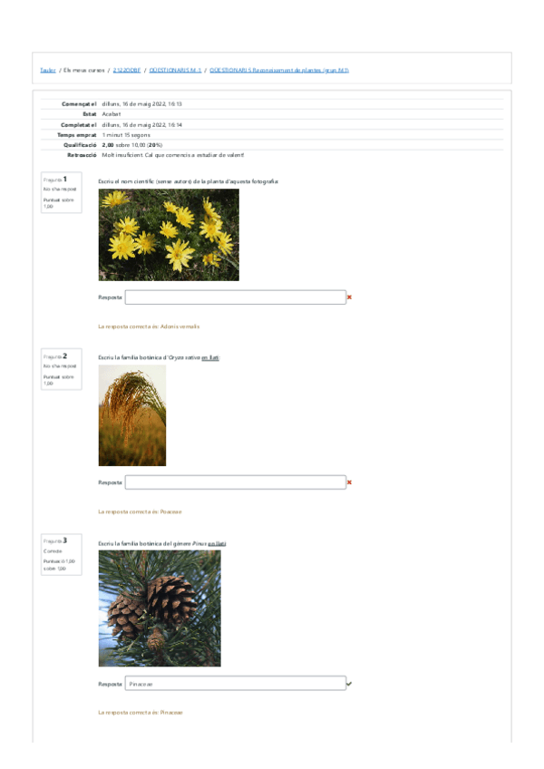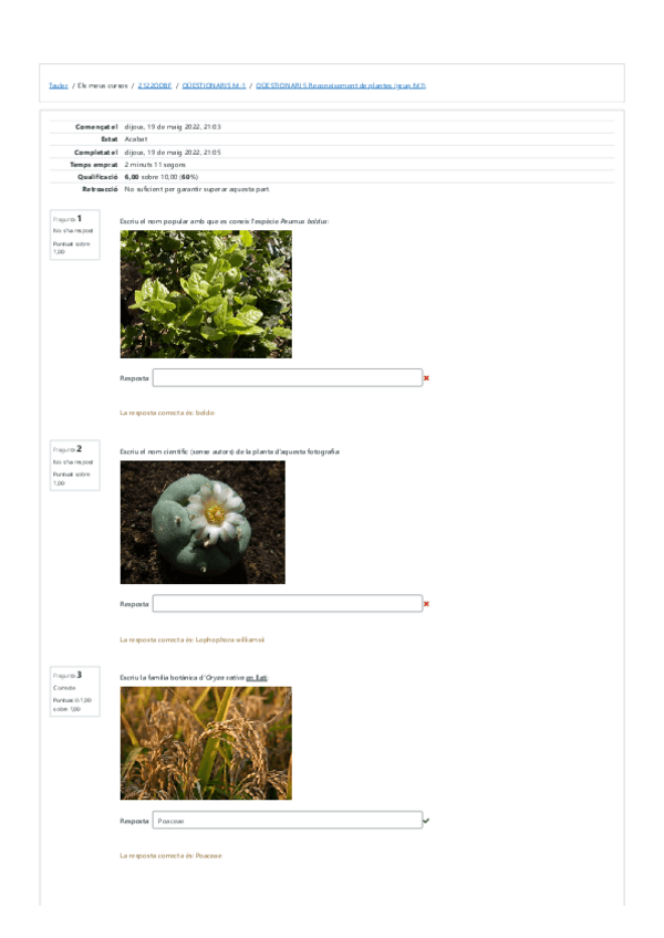 tests reconeixement plantes