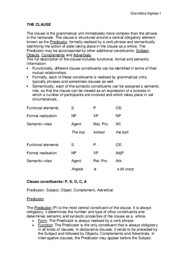 He publicado nuevos apuntes de 2º Gramática Inglesa I: Introducción a la Morfosintaxis: THE-CLAUSE.pdf
