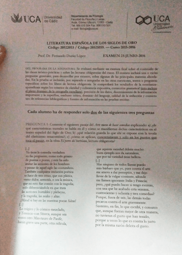 Examen Siglo de Oro - 2016