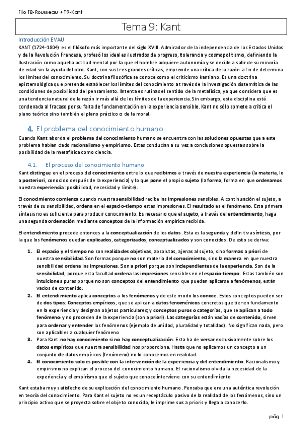 Historia de la Filosofía. Tema 9. Kant y el idealismo trascendental. Incluye introducción con influencias (suman puntos en EVAU).