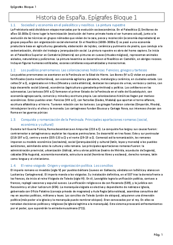 Bloque 1 de Historia de España (epígrafes) del nuevo temario, resumidos a 10 líneas.