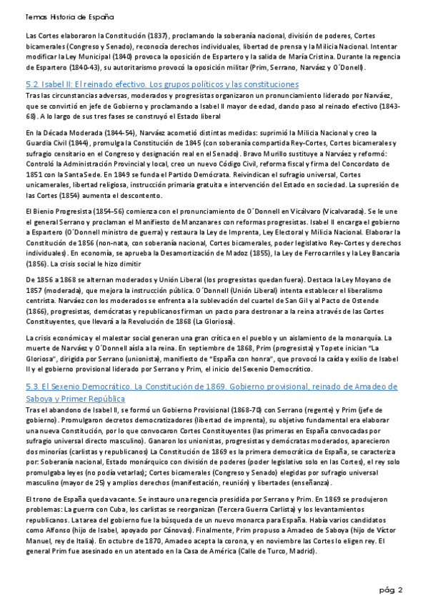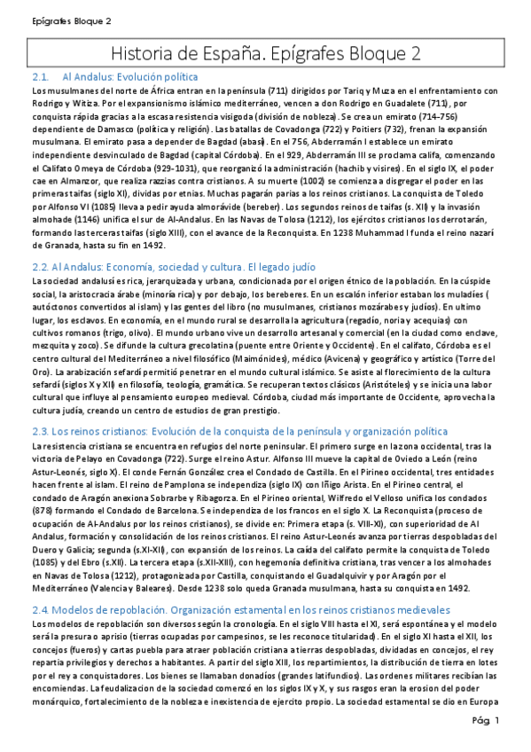 Bloque 2 de Historia de España (epígrafes) del nuevo temario, resumidos a 10 líneas.