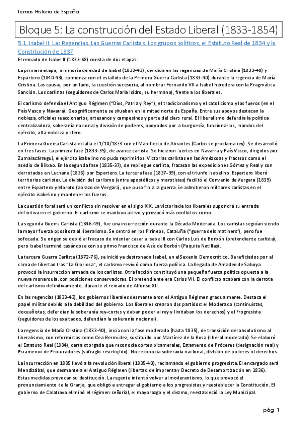 Nuevo Bloque 5 (La construcción del estado liberal. 1833-1874) resumido a menos de 50 líneas