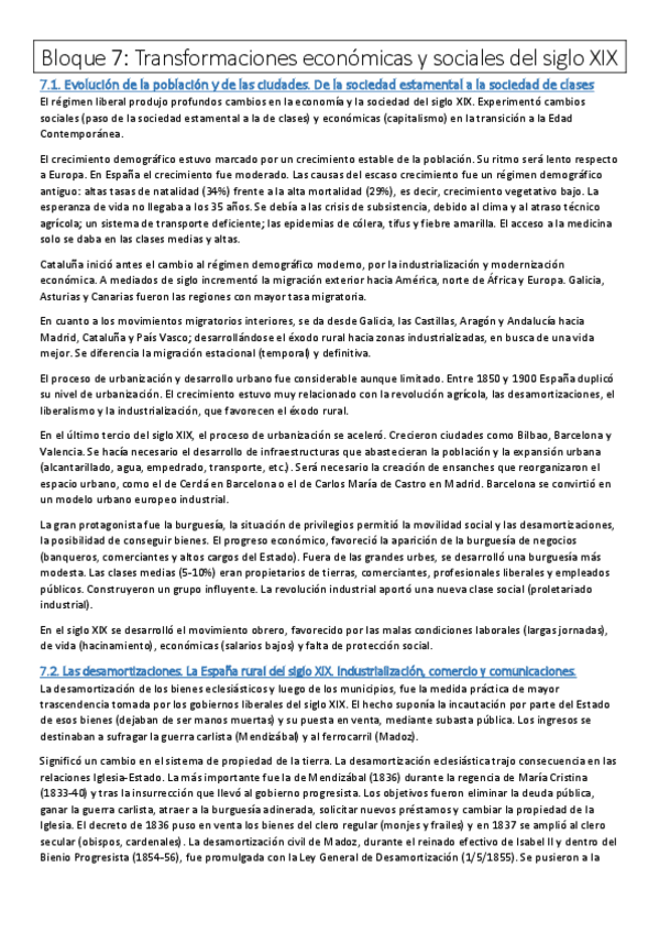 Nuevo Bloque 7 (Transformaciones económicas y sociales del siglo XIX) resumido