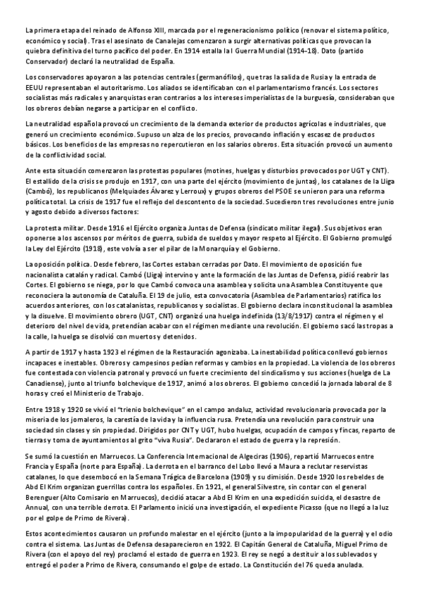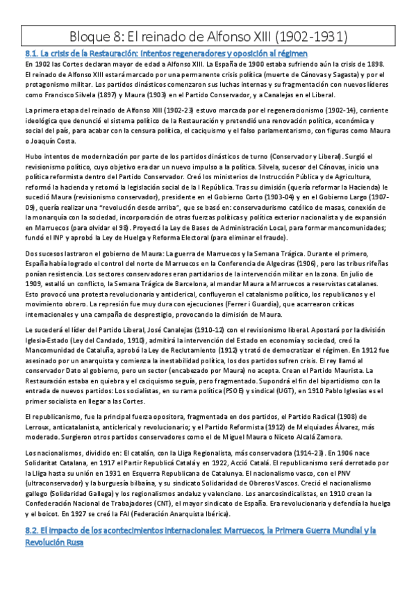 Nuevo Bloque 8 (El reinado de Alfonso XIII, 1902-1931) resumido