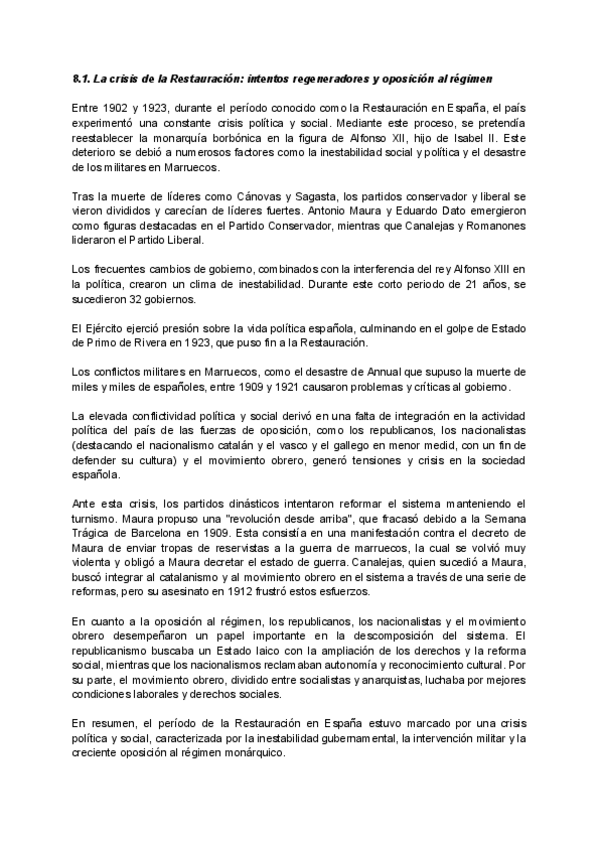 He publicado nuevos apuntes de 2º Historia de España: Bloque C. De la crisis del 98 al fin de la dictadura franquista (LOMLOE)