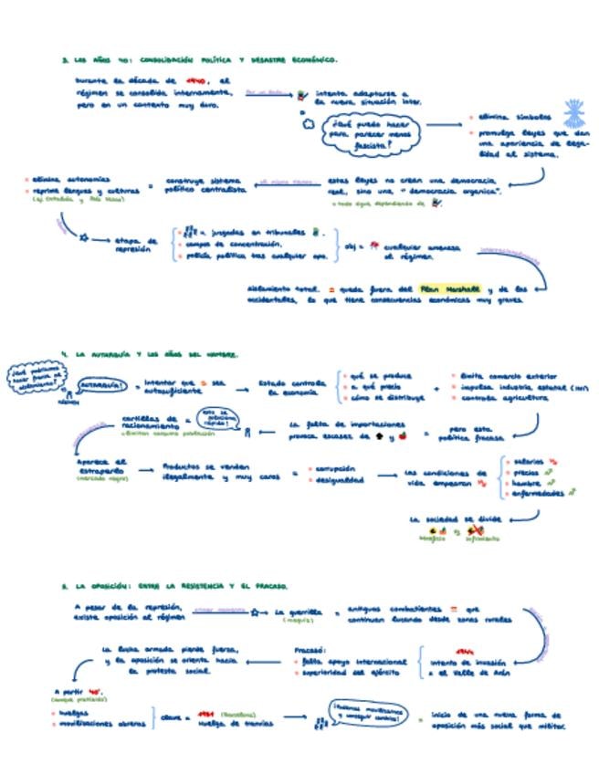 Esquemas resumen de la unidad 12 de historia para segundo de bachillerato: El franquismo, una larga posguerra (1939 - 1959).