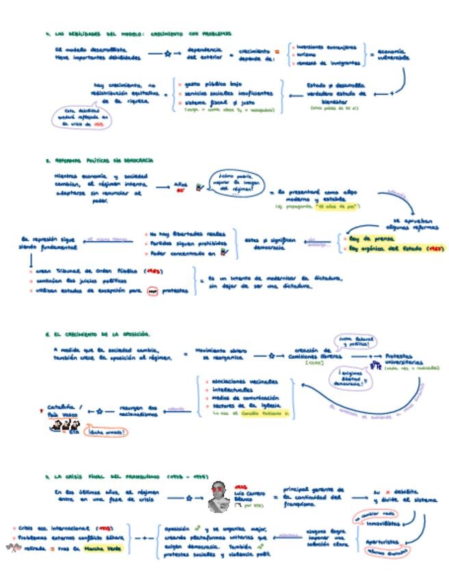 Esquemas resumen del tema 13 de historia de España: El desarrollo y la crisis del franquismo (1960 - 1975)