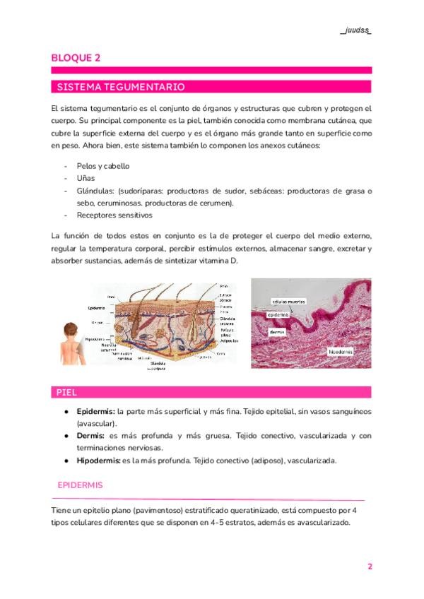 - Tejido tegumentario - Tejido y sistema esquelético - Tejido muscular y sistema muscular