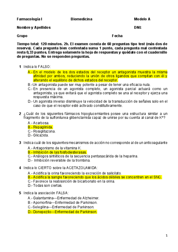He publicado nuevos examenes de 3º Farmacología I: Socrative Resueltos