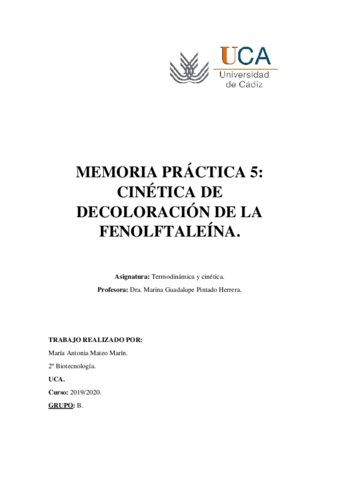 Prácticas Termodinámica y cinética