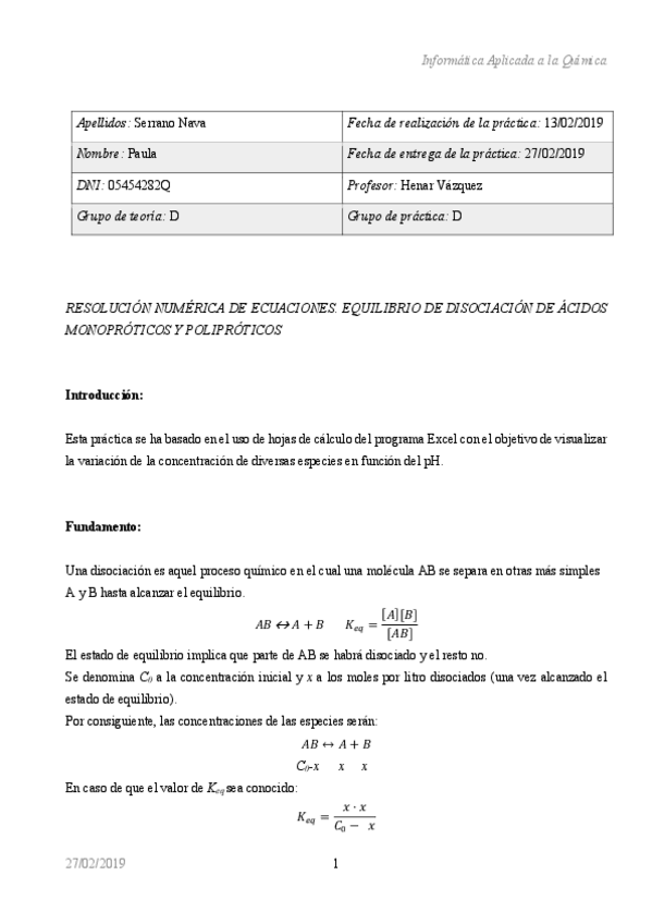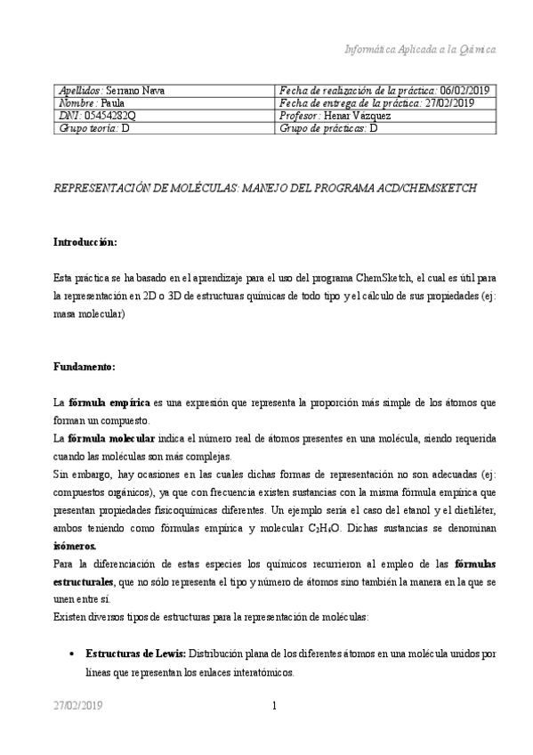 He publicado nuevos practicas de 1º Informática Aplicada a la Química: Informes Nota 9,6