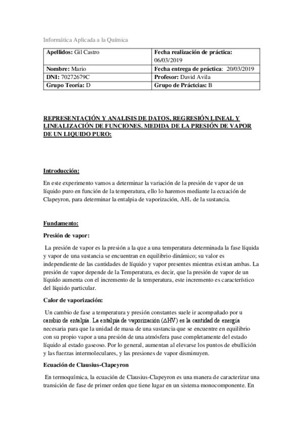 He publicado nuevos practicas de 2º Química Física I: Informes Nota Media 9,8 2º Cuatri