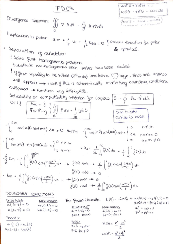 Resumen de teoría para el examen, fórmulas Fourier series y cómo hallar Laplacians