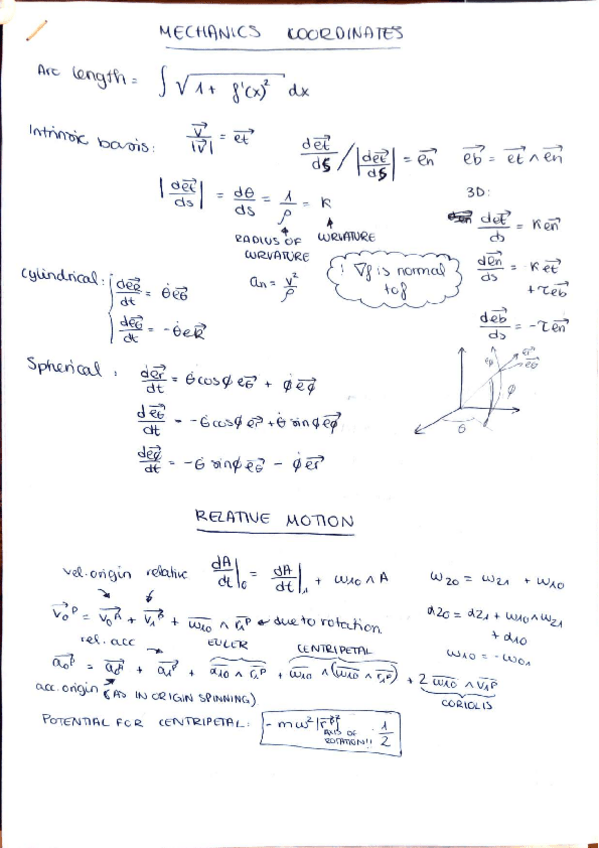 Fórmulas de la primera parte del curso (sistemas de coordenadas)