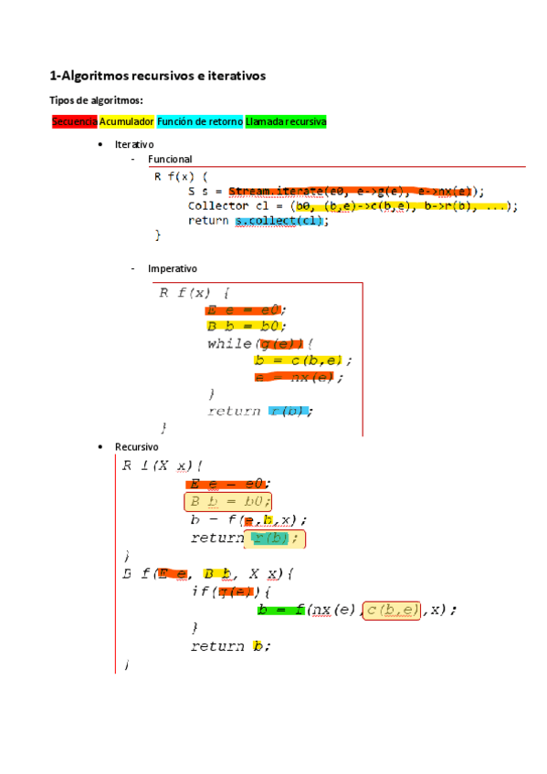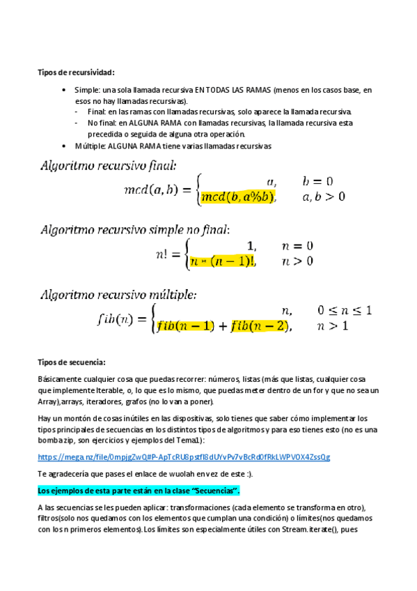 Resumen y ejemplos del tema 1 y 2(menos recursividad múltiple) de ADDA para el parcial