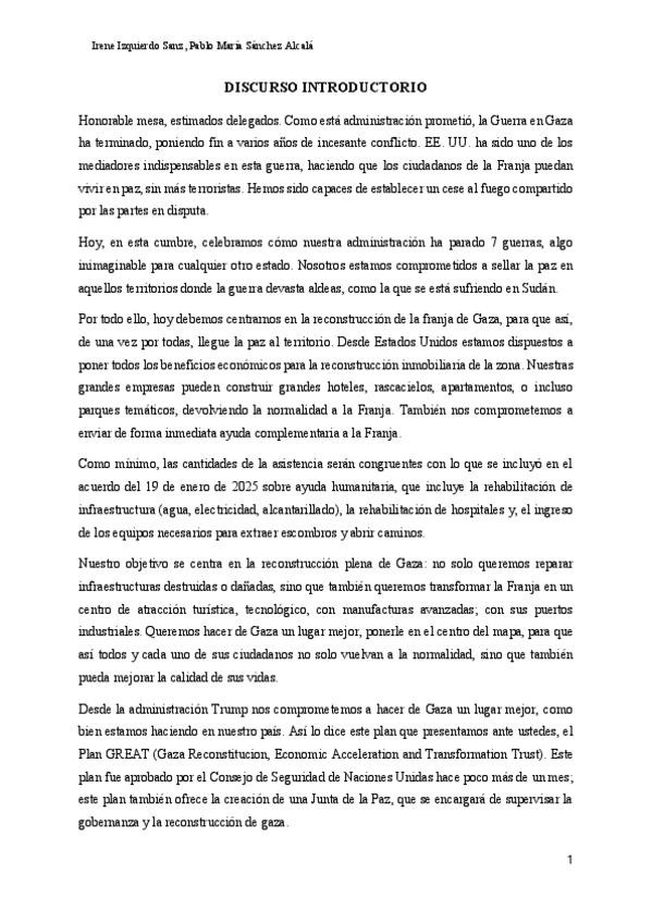 Cumbre Palestina, trabajo final modalidad A
