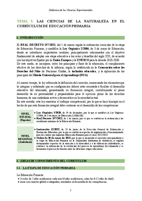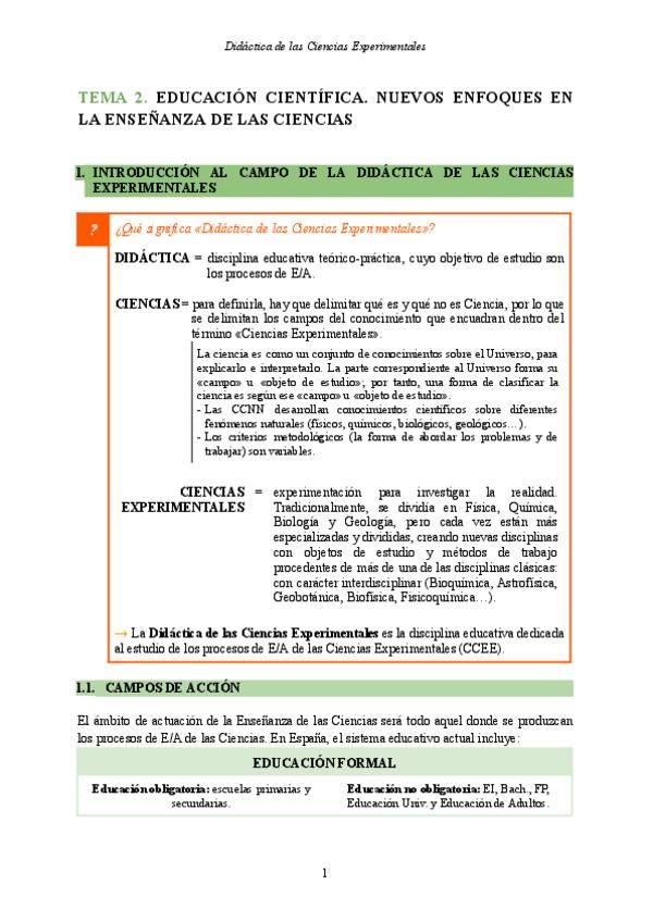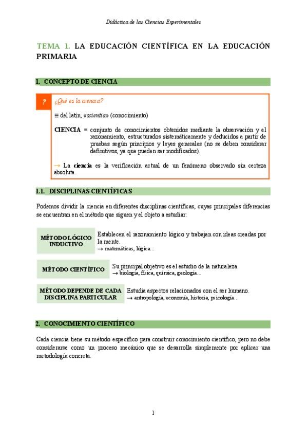 Apuntes Tema 1 - Didáctica de las Ciencias Experimentales