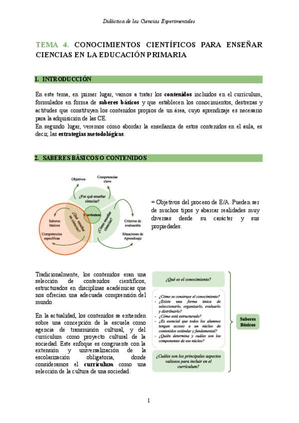 Apuntes Tema 4 - Didáctica de las Ciencias Experimentales