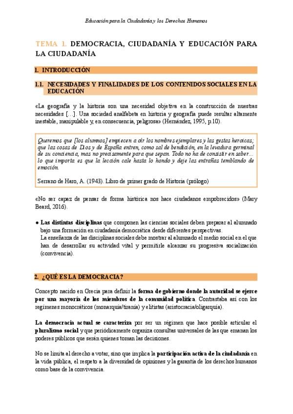 Apuntes Tema 1 - Educación para la Ciudadanía y los Derechos Humanos