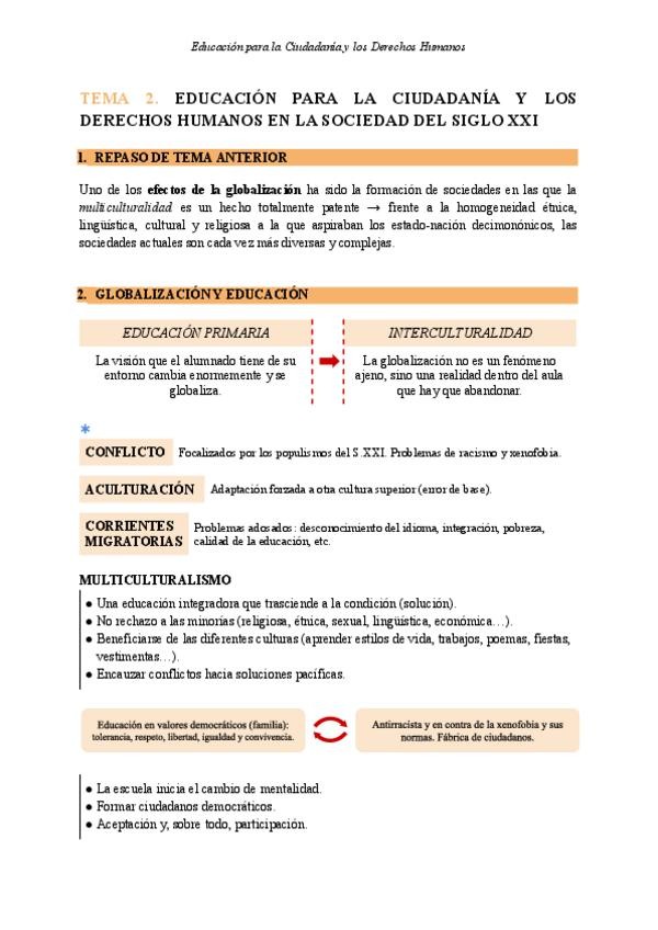 Apuntes Tema 2 - Educación para la Ciudadanía y los Derechos Humanos