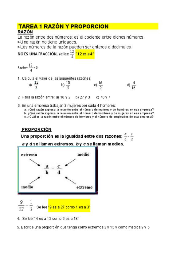 He publicado nuevos ejercicios de 1º Matemáticas: TAREA1RAZONYPROPORCION61.pdf