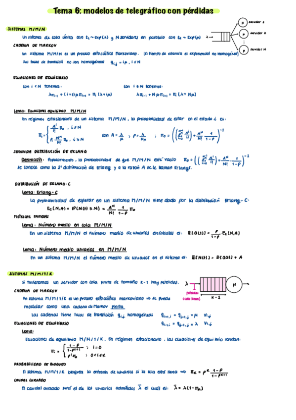 He publicado nuevos apuntes de 2º Redes y Servicios de Telecomunicacion: Resumen TEORÍA DE COLAS