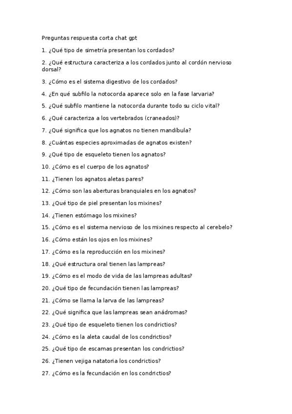 Preguntas cortas bio examen 1 de zoologia con chat gpt