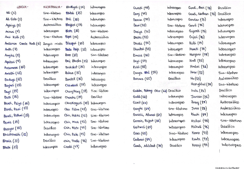 Este documento PDF contiene los mapas de la India y del mundo con su(s) respectiva(s) lengua(s) oficial(es) y su macrofamilia correspondiente de manera enumerada