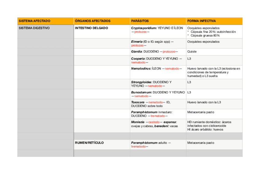 tablas parasitarias