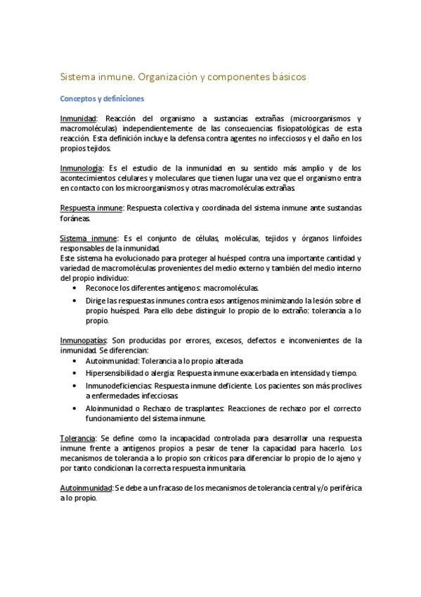 He publicado nuevos apuntes de 3º Microbiología, parasitología e Inmunología Humana: Tema 1. Sistema inmune. Organización y componentes básicos..pdf