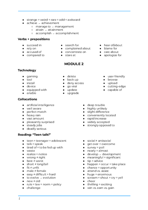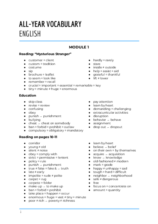 Vocabulario de inglés de todo el curso, con sinónimos, antónimos, palabras derivadas, expresiones y confusiones frecuentes.