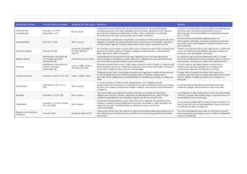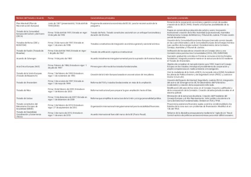 Tablas sobre los aspectos más relevantes de la asignatura y esenciales para el examen