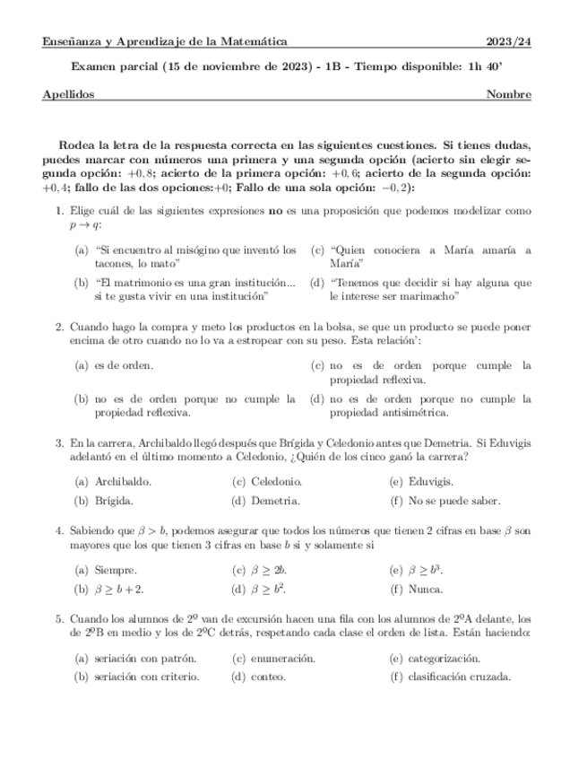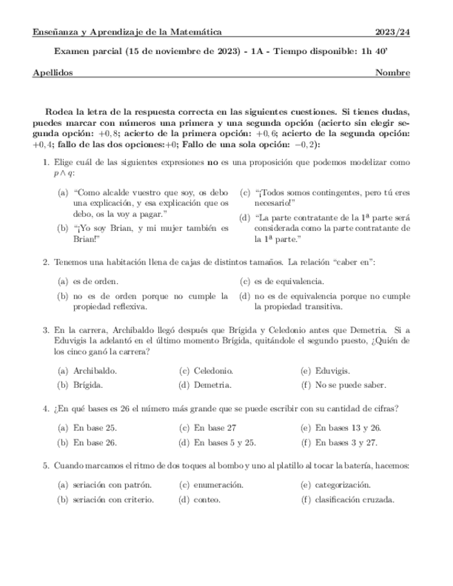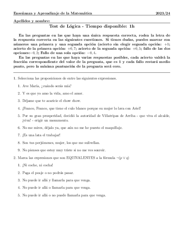 He publicado nuevos apuntes de 3º ENSEÑANZA Y APRENDIZAJE DE LA MATEMÁTICA: Test1.-TEMAS-1-Y-2-LOGICA.pdf