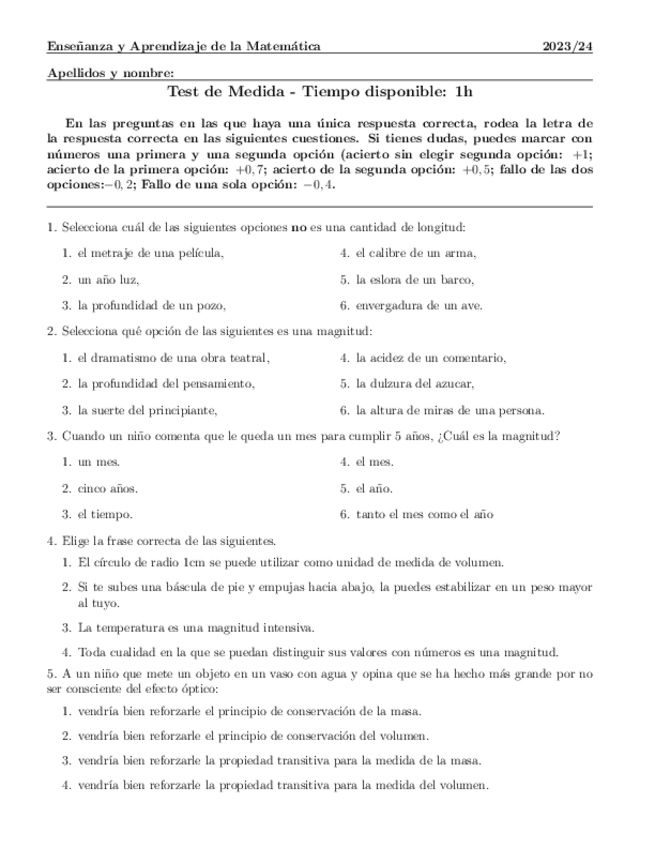 He publicado nuevos apuntes de 3º ENSEÑANZA Y APRENDIZAJE DE LA MATEMÁTICA: Test3.-TEMA-4-MEDIDA.pdf