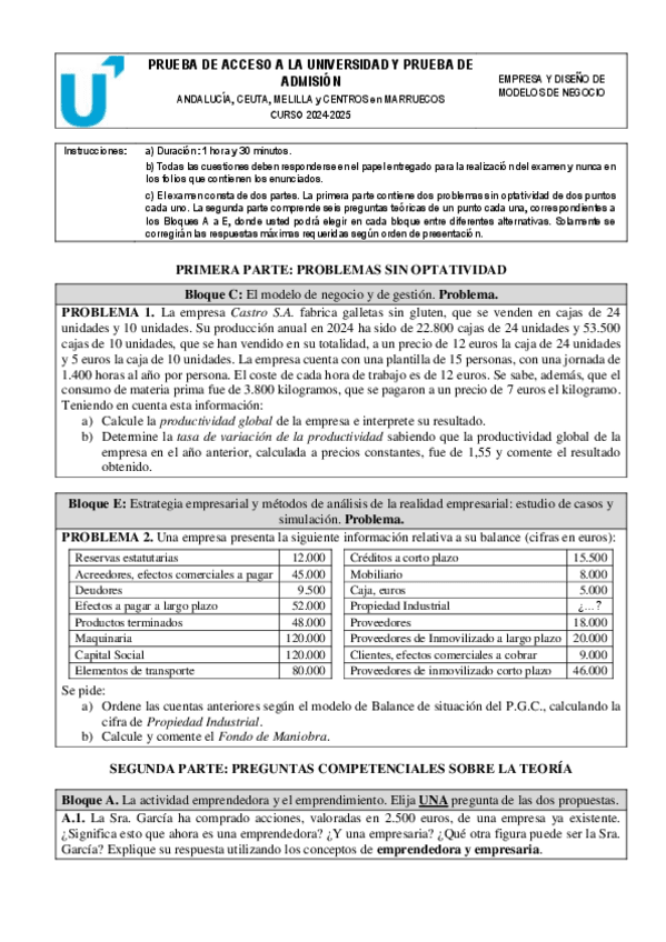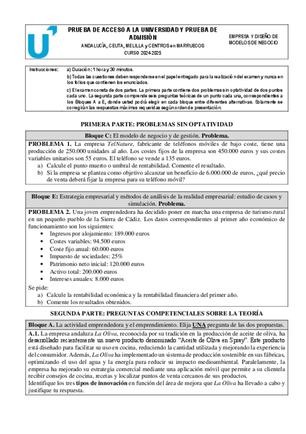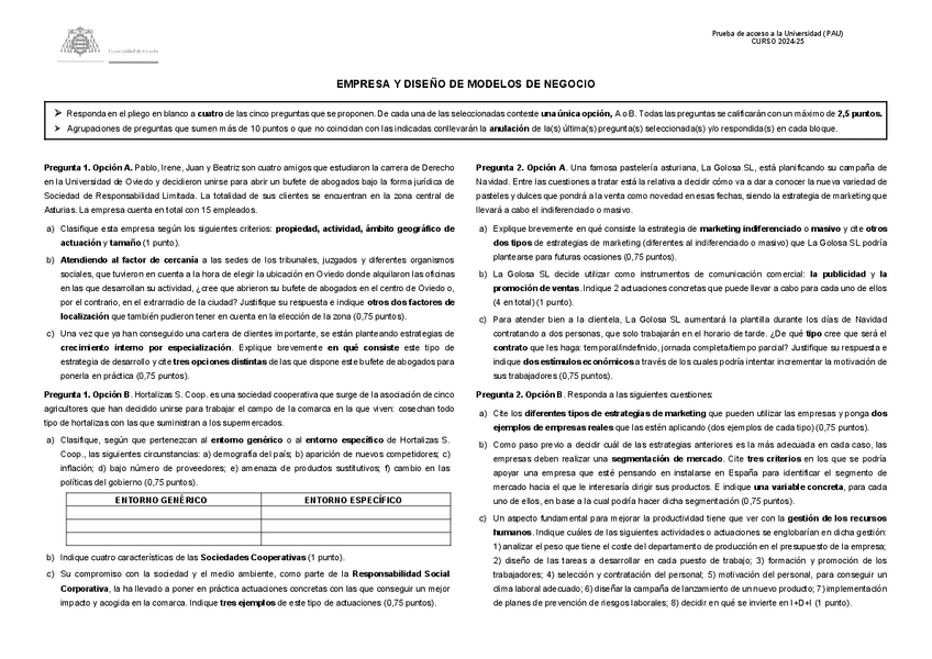 He subido todos los exámenes de Empresa y Diseño de Modelos de Negocio (Economía) para la PAU. Podéis encontrar de absolutamente todas las comunidades, según cuál sea la vuestra :)