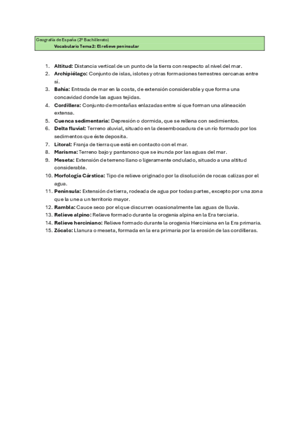 Definiciones Tema 1 de geografía de España de 2º de bachillerato y adaptadas para la PAU 2026