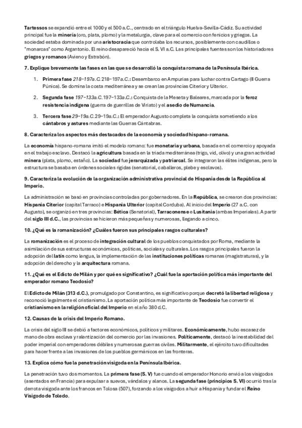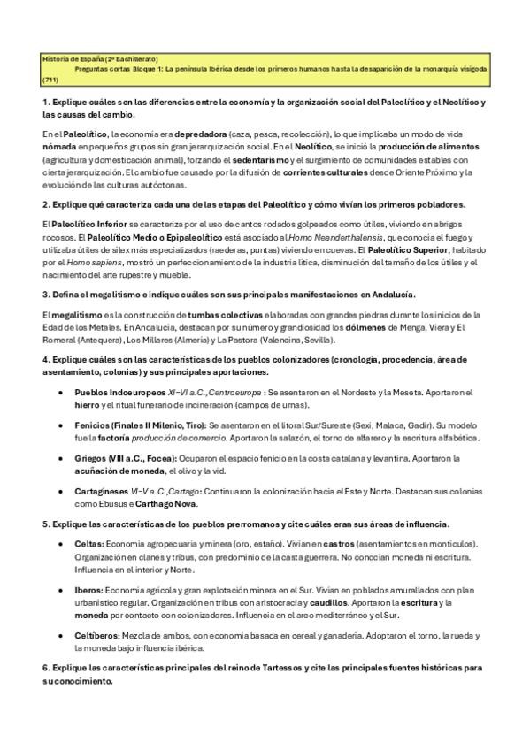 Estas preguntas cortas del BLOQUE 1: La península ibérica desde los primeros humanos hasta la desaparición de la monarquía visigoda (711), son posibles preguntas que pueden entrar en el examen de la PAU de historia de España