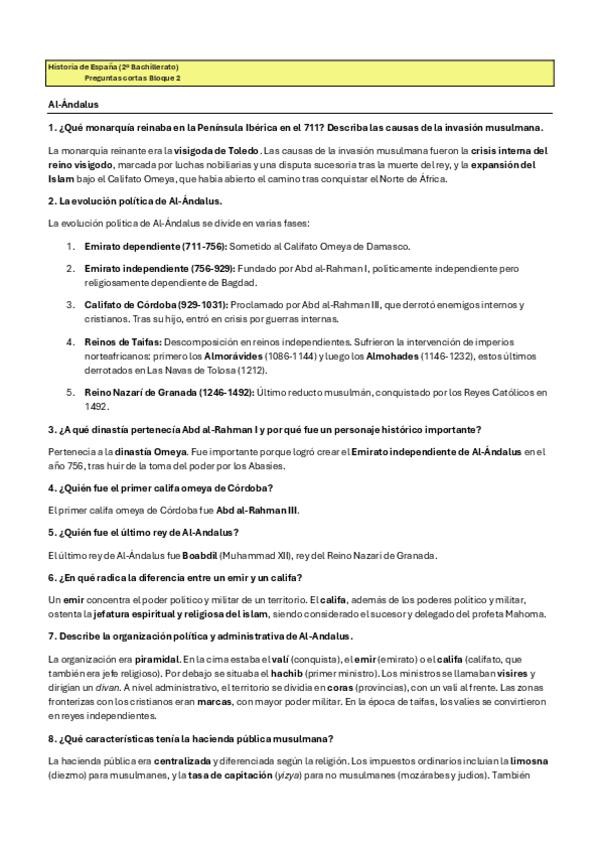 Estas preguntas cortas del BLOQUE 2: La edad media: tres culturas y un mapa político en constante cambio (711-1474), son posibles preguntas que pueden entrar en el examen de la PAU de historia de España