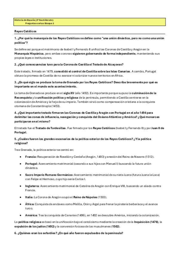 Estas preguntas cortas del BLOQUE 3: La formación de la monarquía hispánica y su expansión mundial (1474-1700), son posibles preguntas que pueden entrar en el examen de la PAU de historia de España