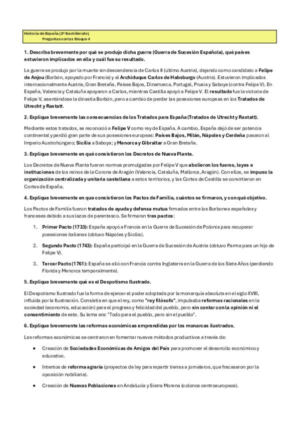 Estas preguntas cortas del BLOQUE 4: España en la órbita francesa: el reformismo de los primeros Borbones (1700-1788), son posibles preguntas que pueden entrar en el examen de la PAU de historia de España