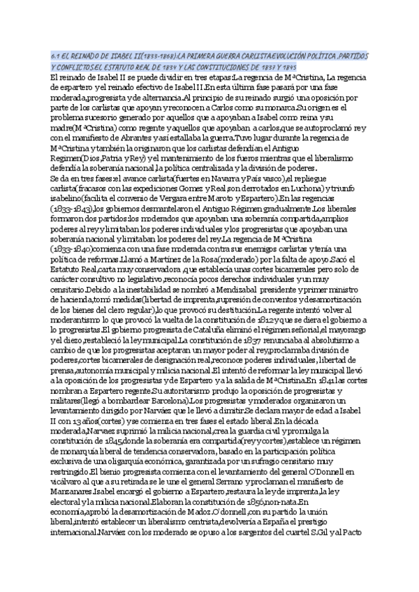 He publicado nuevos apuntes de Historia de España: 6.1-EL-REINADO-DE-ISABEL-II1833-1868LA-PRIMERA-GUERRA-CARLISTA.EVOLUCION-POLITICA-PARTIDOS-Y-CONFLICTOS.EL-ESTATUTO-REAL-DE-1834-Y-LAS-CONSTITUCIONES-DE-1837-Y-1845.pdf
