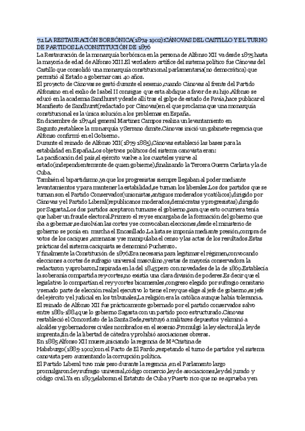 He publicado nuevos apuntes de Historia de España: 7.1-LA-RESTAURACION-BORBONICA1874-1902CANOVAS-DEL-CASTILLO-Y-EL-TURNO-DE-PARTIDOS.LA-CONSTITUCION-DE-1876.pdf