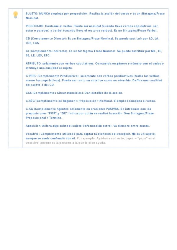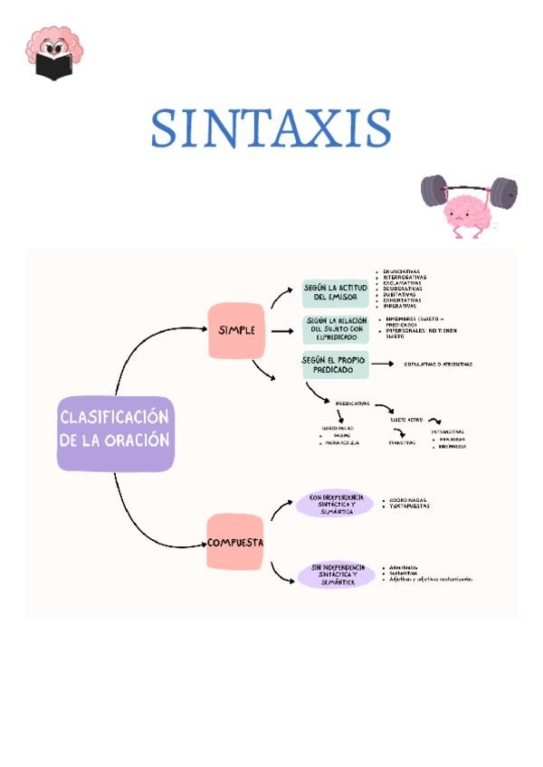 Resúmenes y esquemas del temario de sintaxis. Incluye ejercicios para practicar al final del documento.