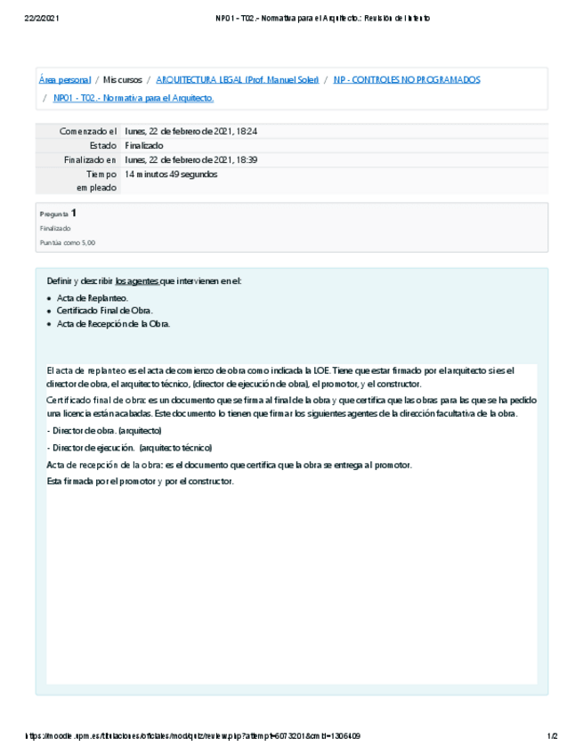 He publicado nuevos test de 5º Arquitectura Legal: Controles no programados