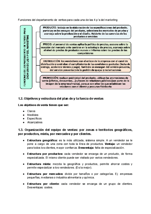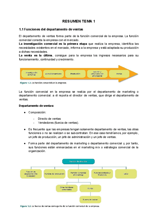 Resumen TEMA 1 "Determinación de la estructura organizativa y del tamaño del equipo de ventas" del libro de Organización de equipos de ventas. 2ª edición 2022.
