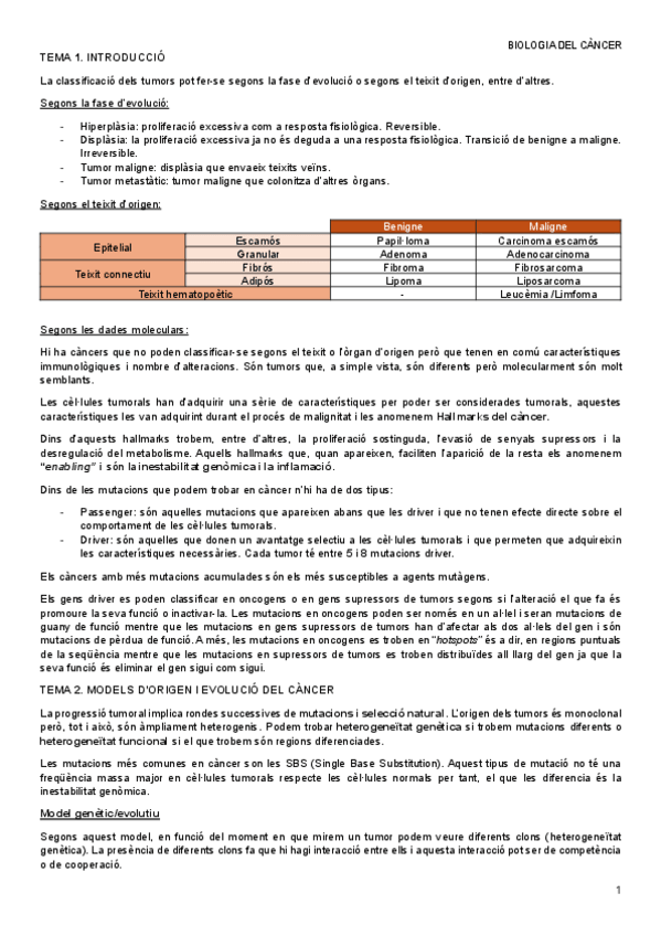 He publicado nuevos apuntes de 3º Biología del Cáncer: Biologia del càncer