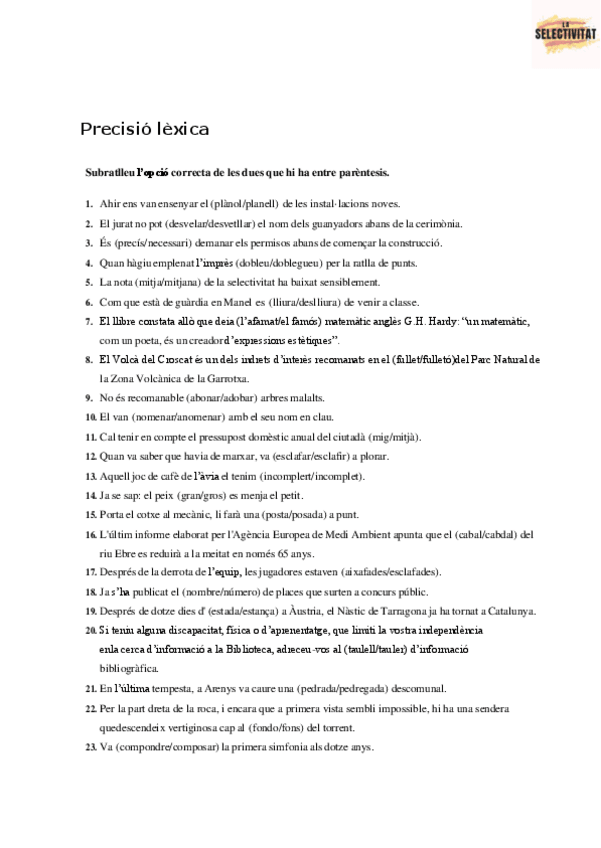 He publicado nuevos apuntes de 2º Lengua Catalana y Literatura II: Precisio-lexica-exercicis.pdf
