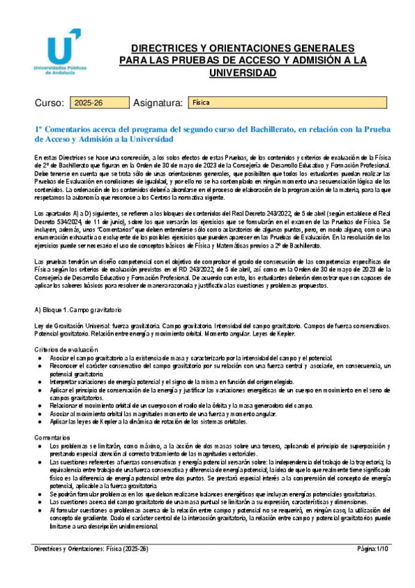 Orientaciones formato examen selectividad 2026 Física www.academiaconoser.es presencial y streaming.